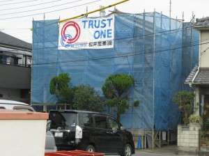 お客様の大切な資産ですので,電柱の防護管カバー取付,シートの張り方,看板シートなど足場についても当社安全パトロールのチェックリストに基づいて施工をしております。