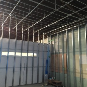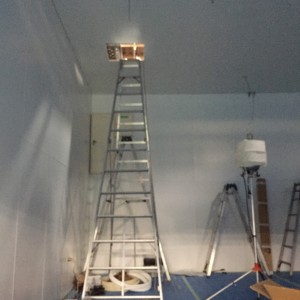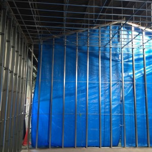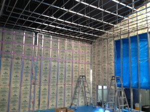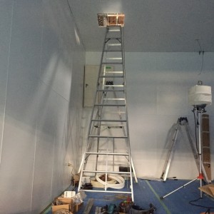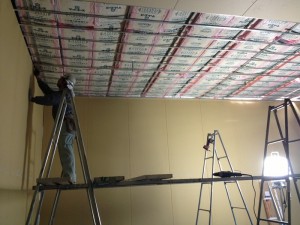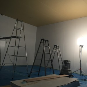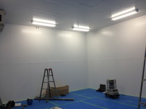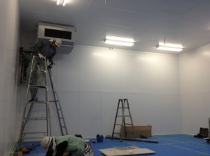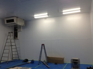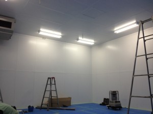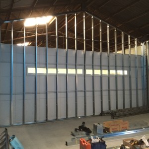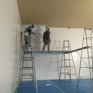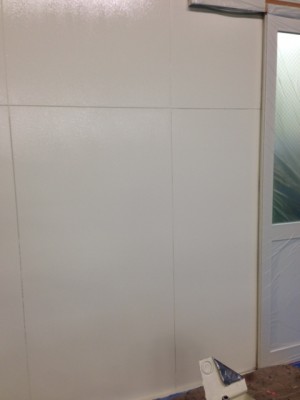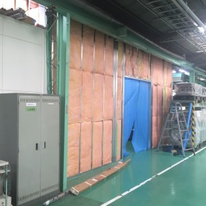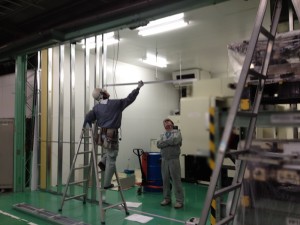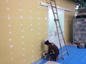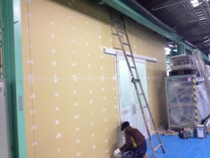 埼玉県八潮市A様工場内機械室増設工事,パネルの張り付けを行っています。