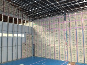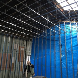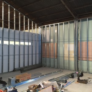八潮市A様工場内部断熱材工事後にボードの取り付けを行っています。