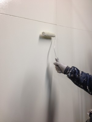 八潮市A様工場機械室ボードを張り,パテ,中塗り,上塗りの様子です。