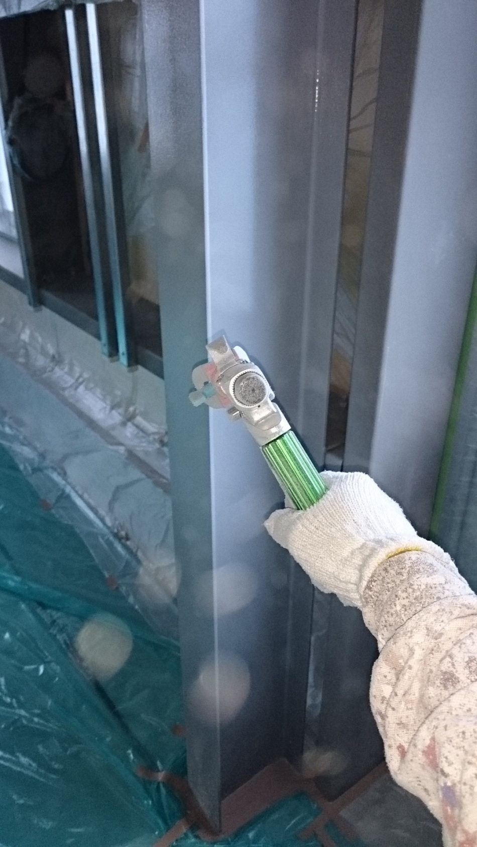 【三郷市】K様新築社屋工事は床,プライマー塗布と中塗り上塗り施工の工程です。