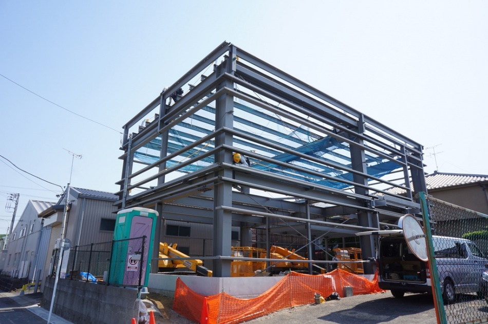 【埼玉県三郷市】K様社屋建替え工事は鉄骨の建て方が完了しました。