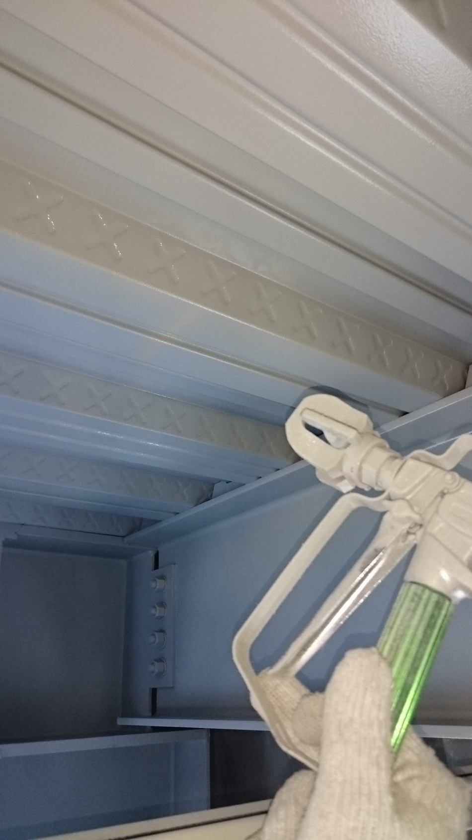 鉄骨造でLGS下地のためステップル等で止めれない為隙間がなくずれ込の出ない様充填されているか確認します。