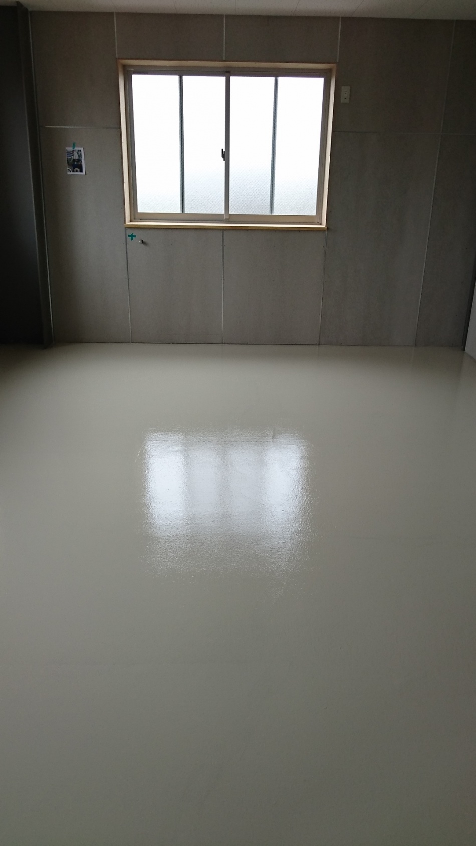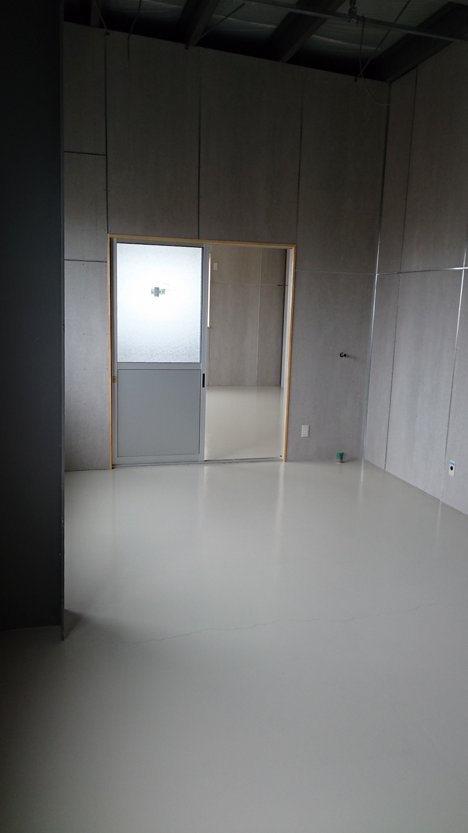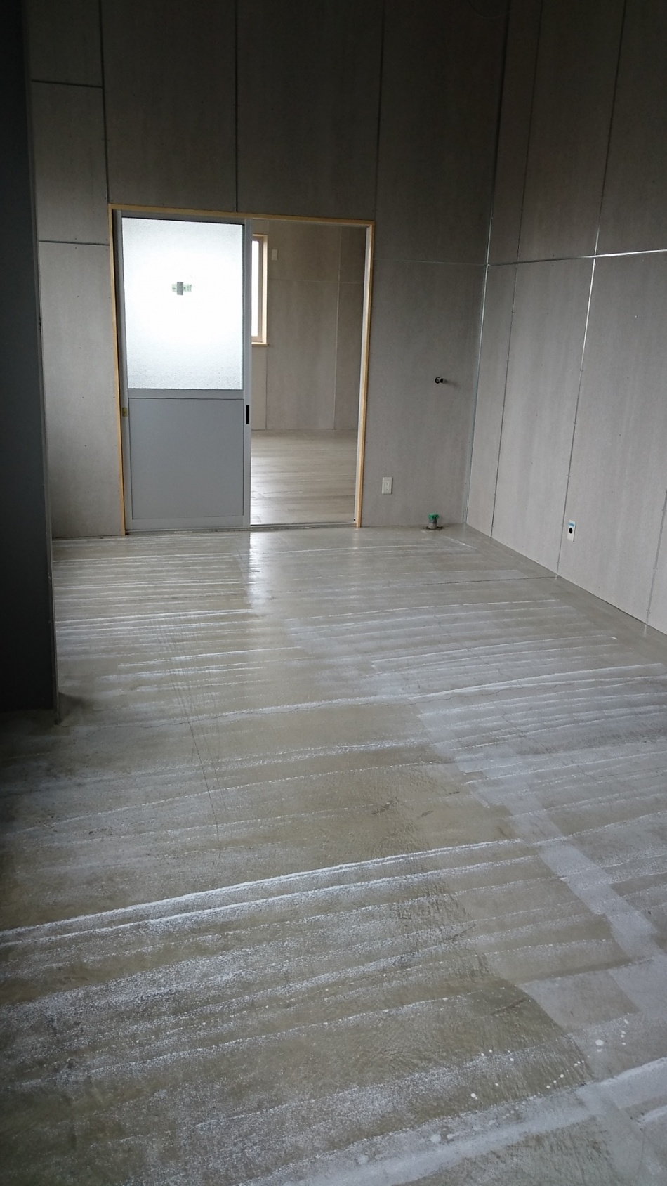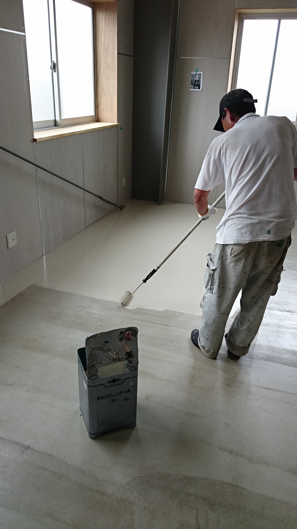 【埼玉県三郷市】K様新築社屋建設工事,床,プライマー塗布と中塗り上塗り施工の工程です。松井産業株式会社