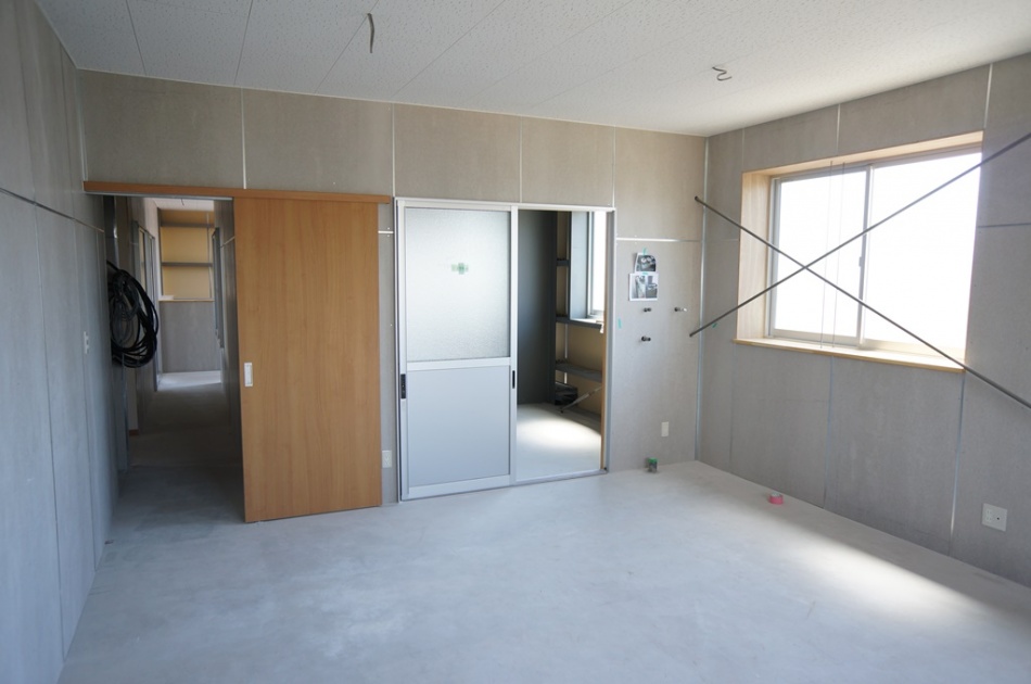 外部工事はほぼ完了しておりますので,これから内部の造作工事に入ります。