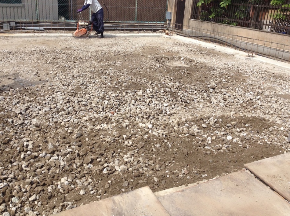 K様社宅建替え工事は現在ランマ―にて転圧をしております。