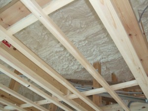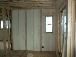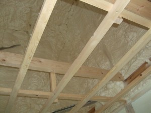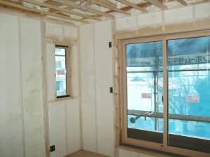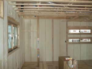 発砲ウレタン吹き付け断熱により,袋入りグラスウールよりも断熱性能が飛躍的に上昇しています。夏,冬の断熱効果はエアコンの電気消費量にも直結するとても大事で大切な家づくりの要点です。