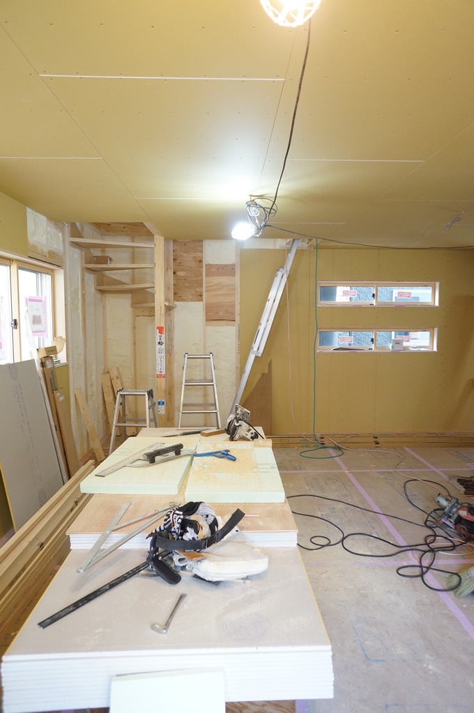 お引渡しに向けて後は内部工事を残すところとなりました。工期を厳守できるように段取りよく工事をすすめてまいります。