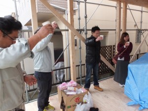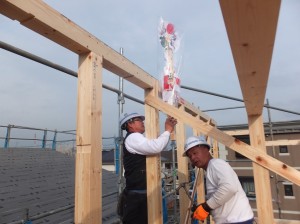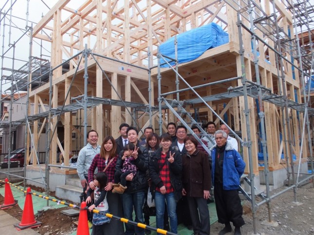 Iさま、本日は上棟おめでとうございます。また工事に携わって頂いた職人のみなさま、誠にありがとうございます。完成まで色々とご協力頂くところも多々あるかと思いますが、今後ともよろしくお願いいたします。Byなか。