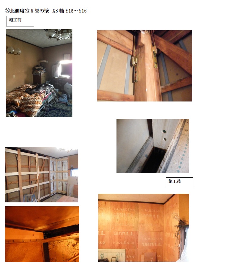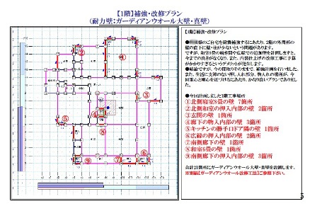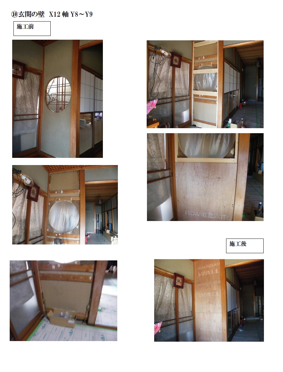計画に従って必要なところにガーディアンウォ―ルを施工しています。耐震助成金が絡む工事となります当然のことですが施工前と施工後の写真は特に大事です。