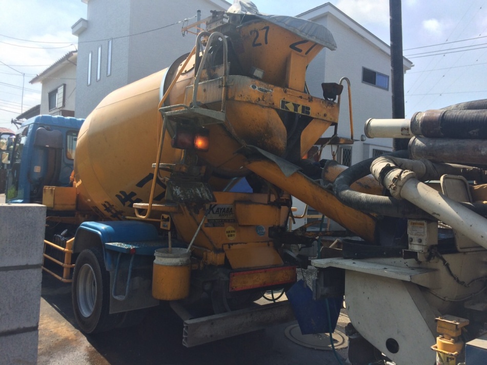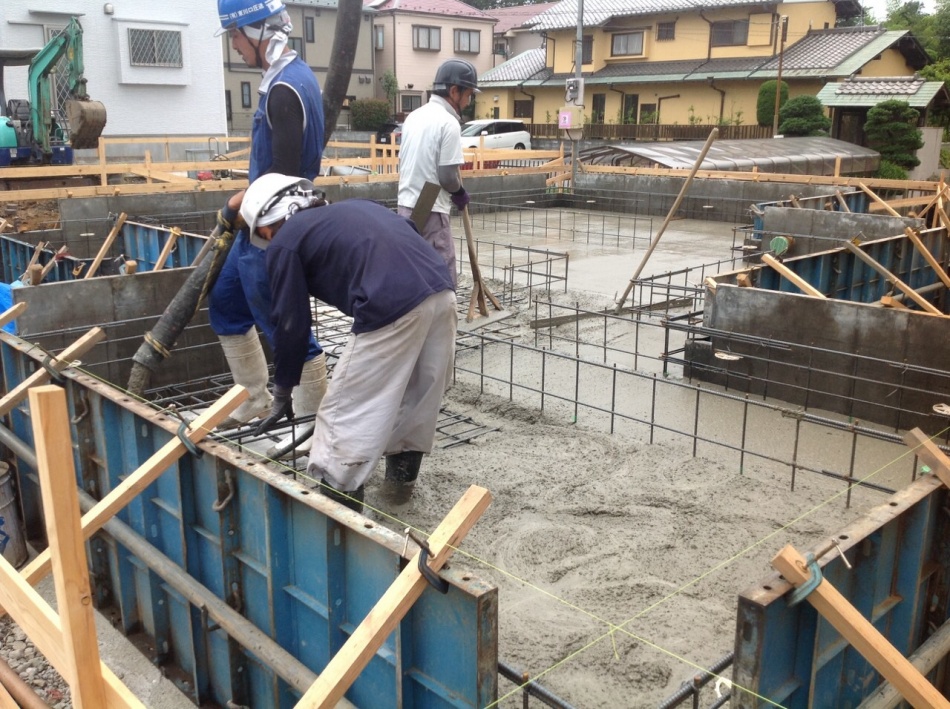 コンクリートの打ち方として一度に打つわけではなくバイブレーターと言われる機械でコンクリートを撹拌させ良い仕上がりになるよう工事をしています。