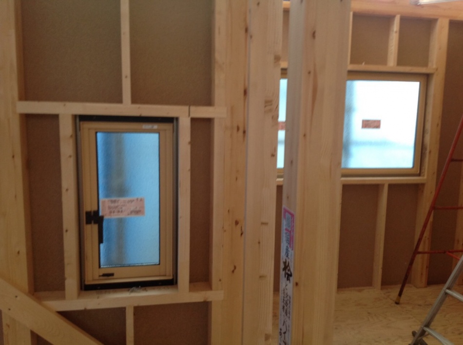 I様邸は窓枠を取り付けてフロア張りを行っています。