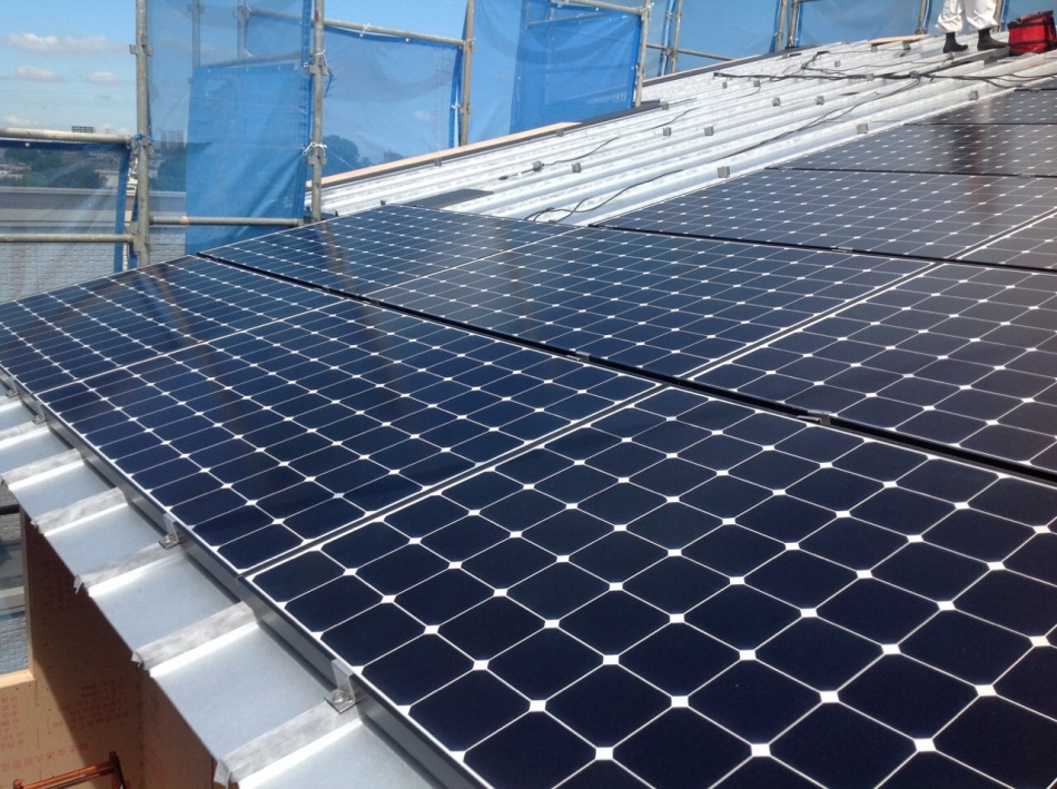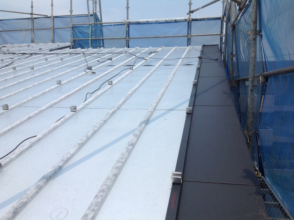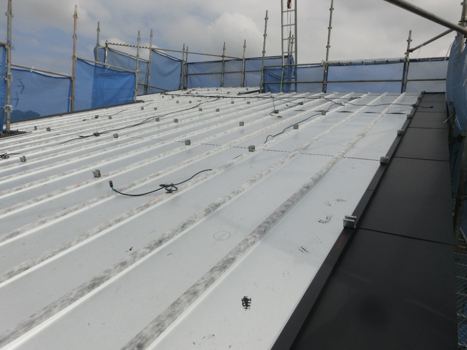 太陽光パネルの施工状況を確認しました。アンダールーフ工法で屋根と一体になっているように見えます。