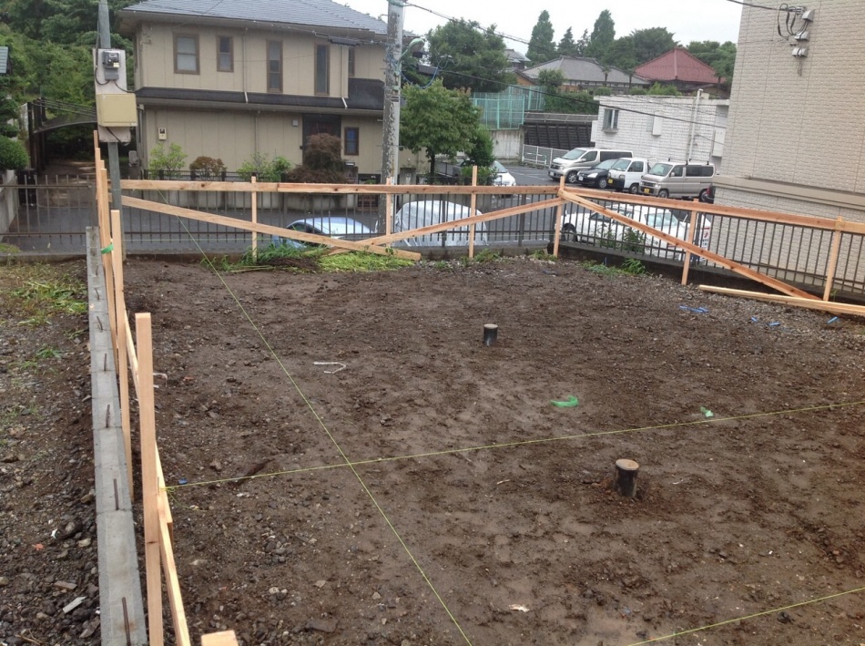 川口市I様邸新築工事は基礎の基準となる丁張掛けを行いました。