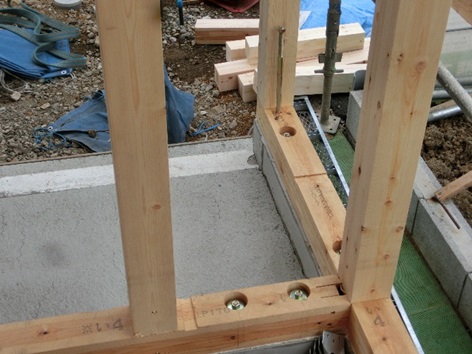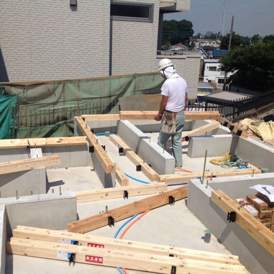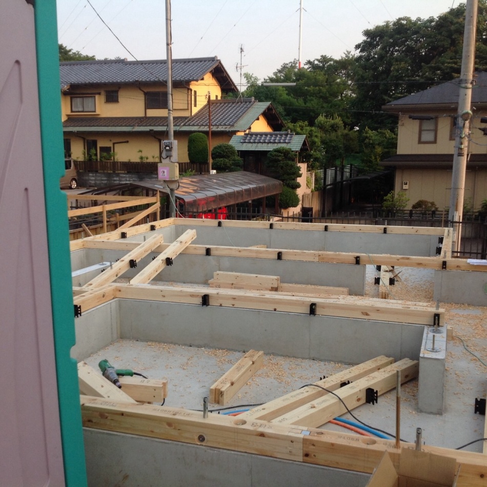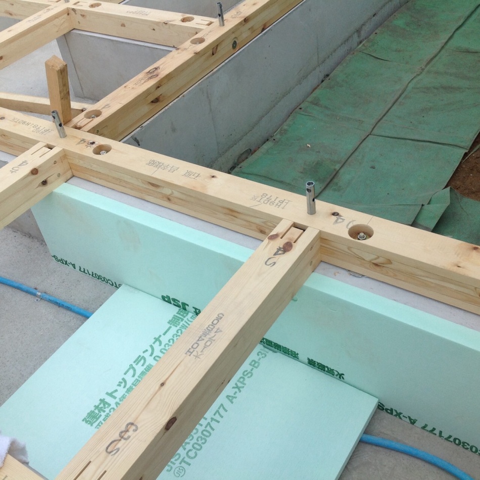 川口市のI様邸は大工さんが入りまして土台敷きを行っています。
