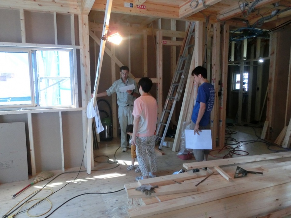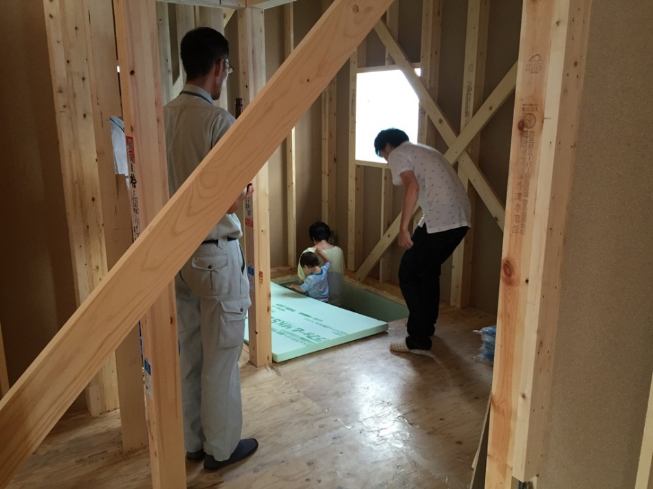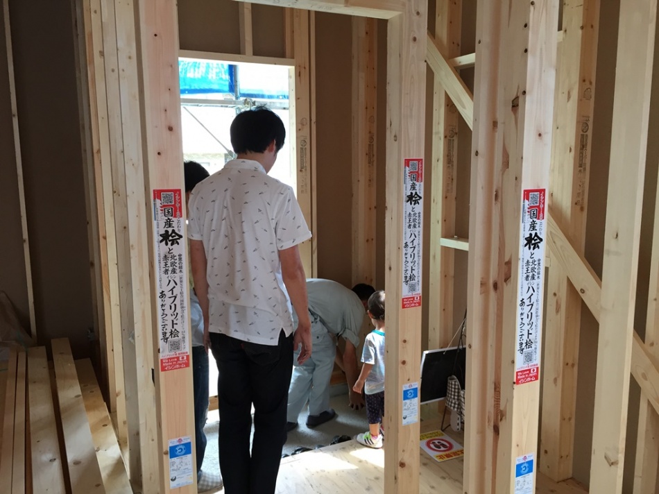 お清め後に斉藤と岸とI様にて打ち合わせを行い外装と内装の仕様決めを行いました。次回は吹き付け断熱工事の前に電気配線をI様と確認いたします。I様,本日はお暑い中ありがとうござました!!