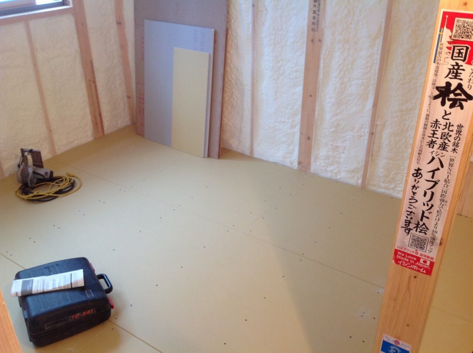 2階床は12.5mmの石膏ボートにフローリング張りとなります。