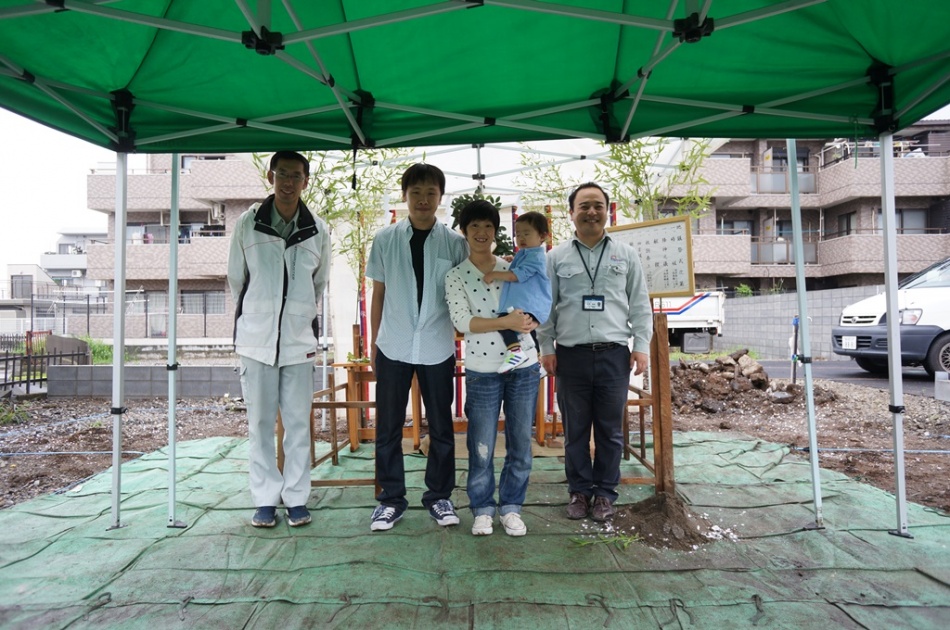 I様おめでとうございます。本日は雨が降っていましたが,地鎮祭が始まる時にはちょうど雨がやみました。
