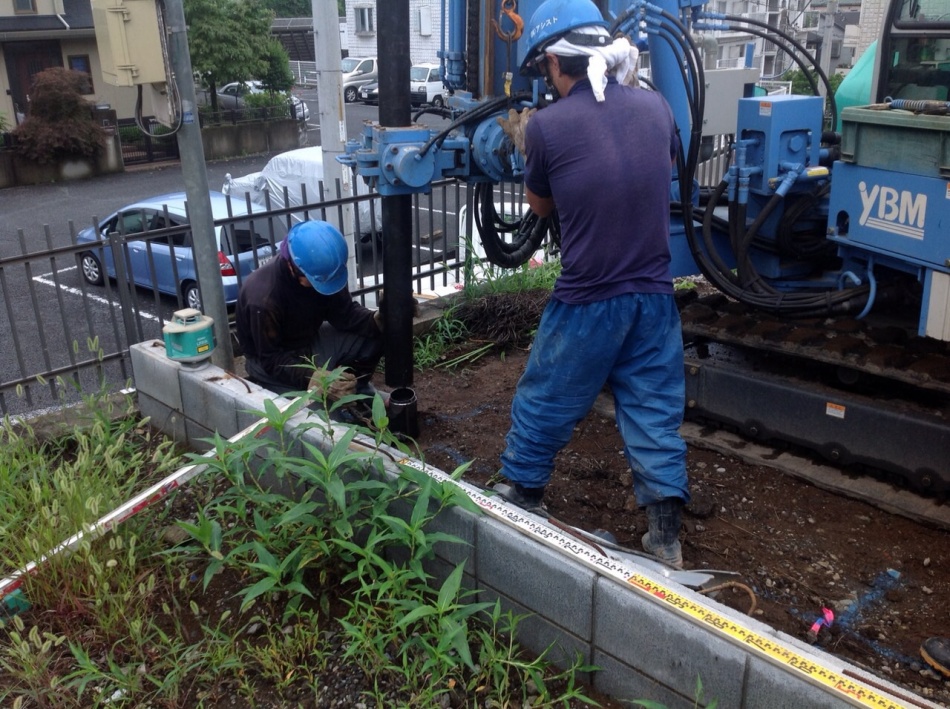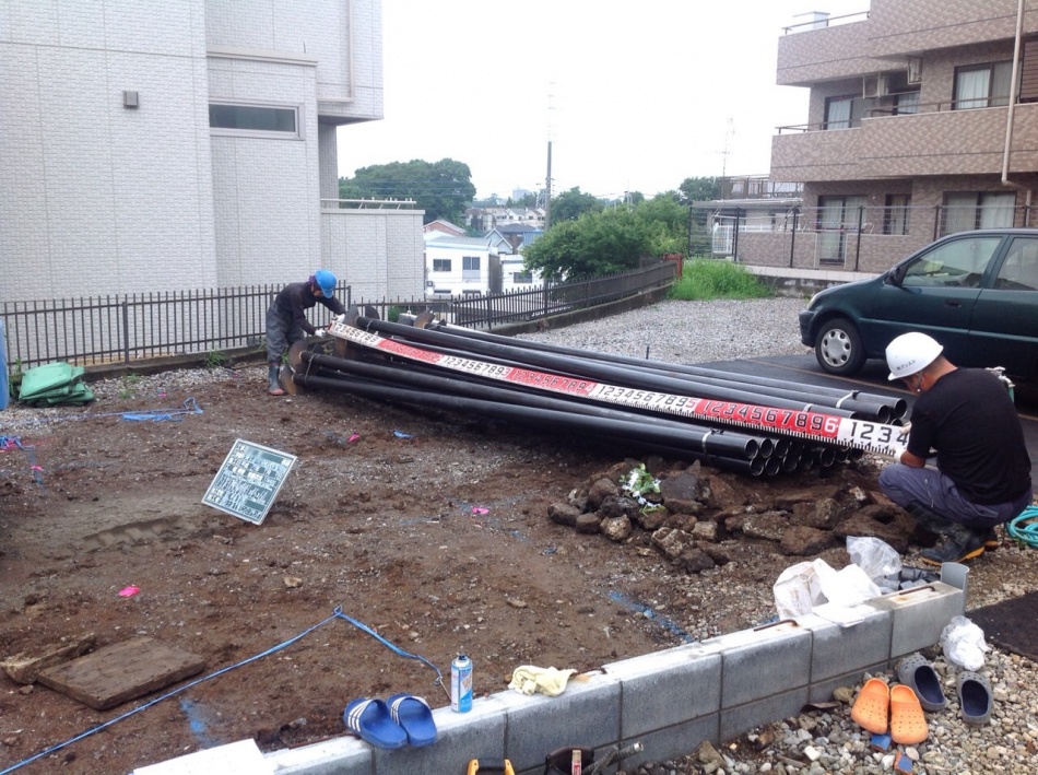 埼玉県川口市I様邸鋼管杭工事の様子です。