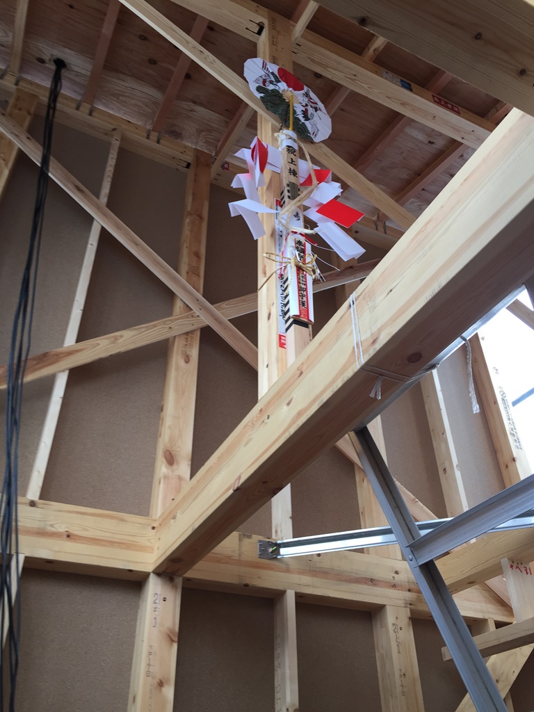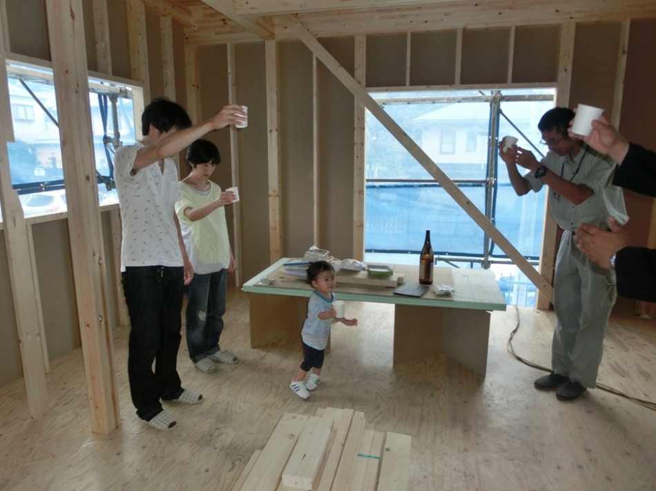 上棟までの工事が終了した事と、工事が無事完成する事を祈願し、乾杯させていただきました。