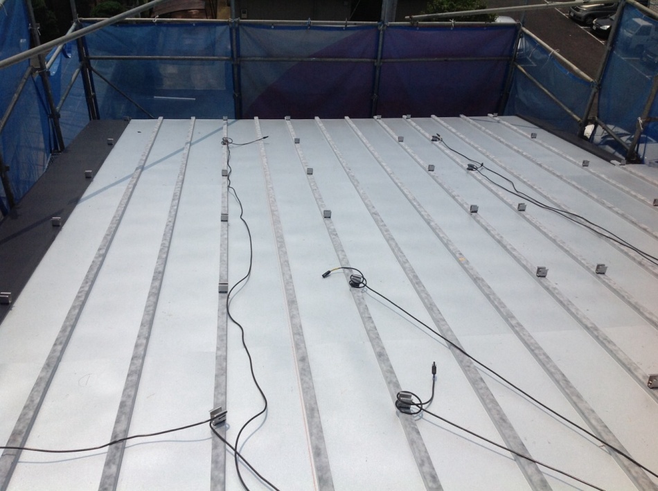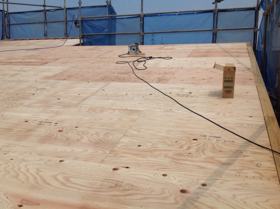 この後,床合板張と仮設足場組を行います。
