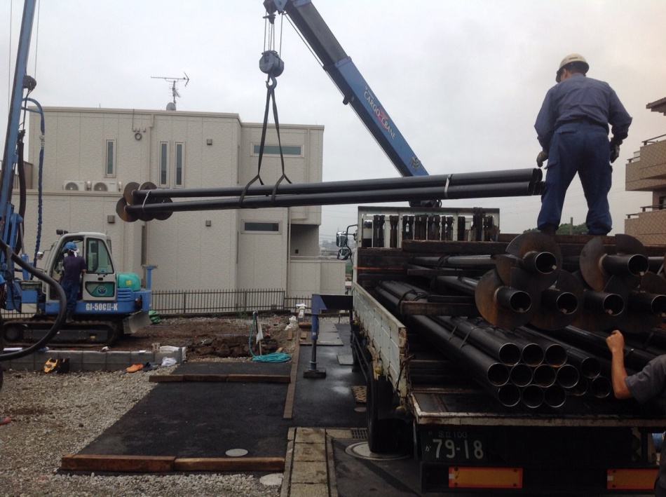 今回は鋼管杭の先端に羽根がついており大きな支持力を発揮されます。