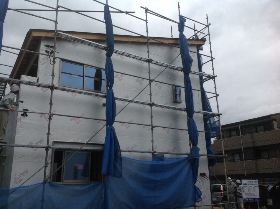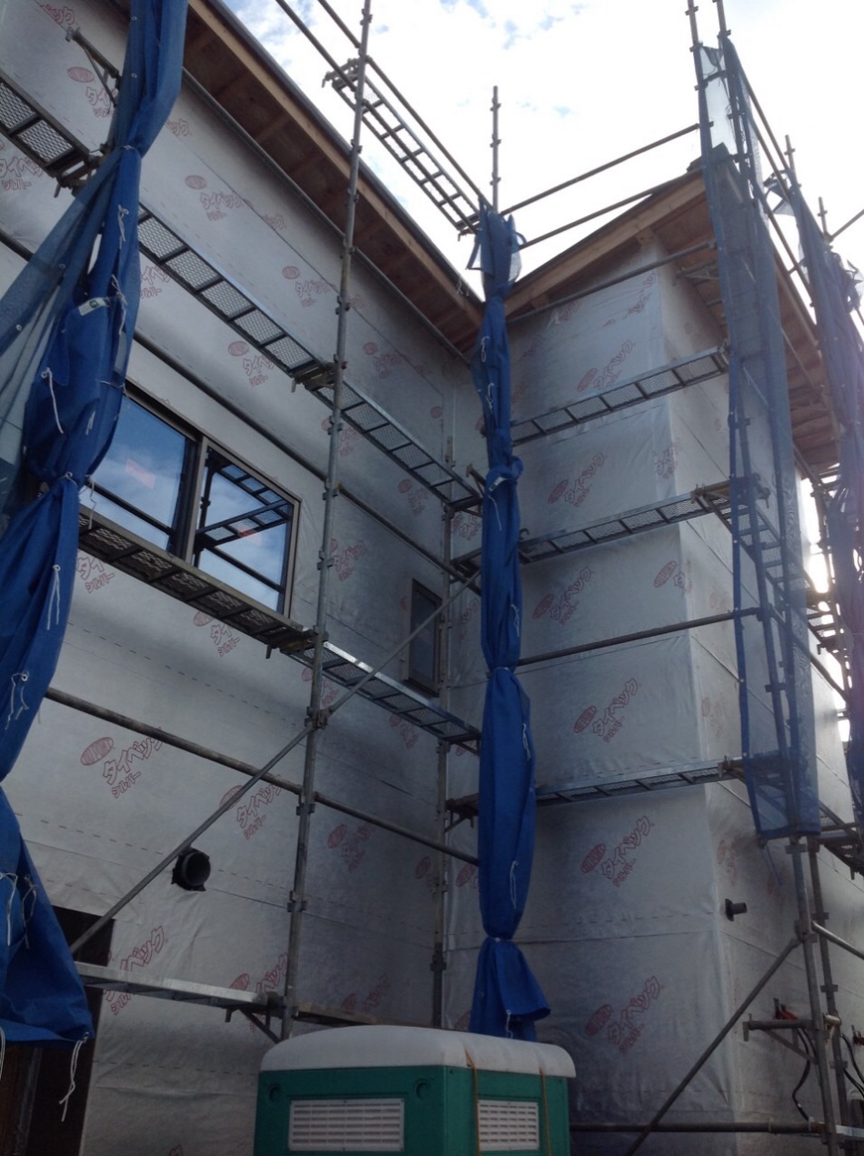 現在2階の収納を施工しています。外壁はほぼ張り終わりました。