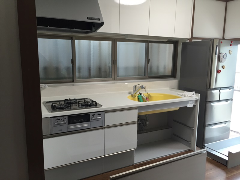 担当 田中「今回は葛飾区西水元のお客様でキッチン,ダイニングの改修工事をさせていただきました。経年劣化によりダイニングの床の痛みが酷く補修では難しいと判断をし床下地はすべて新規にやり替えをさせていただき,ワンちゃんを飼っていましたのでフローリング材はペット対応のフローリングをご提案させていただきました。また,防音・断熱効果のあるインプラスなどもご提案させていただきました。完成にもご満足をしていただきまして本当に良かったと思います。今後ともアフターメンテナンスを含めまして末永いお付き合いをどうぞ宜しくお願い致します。」