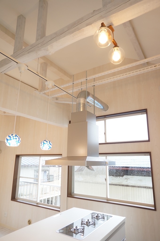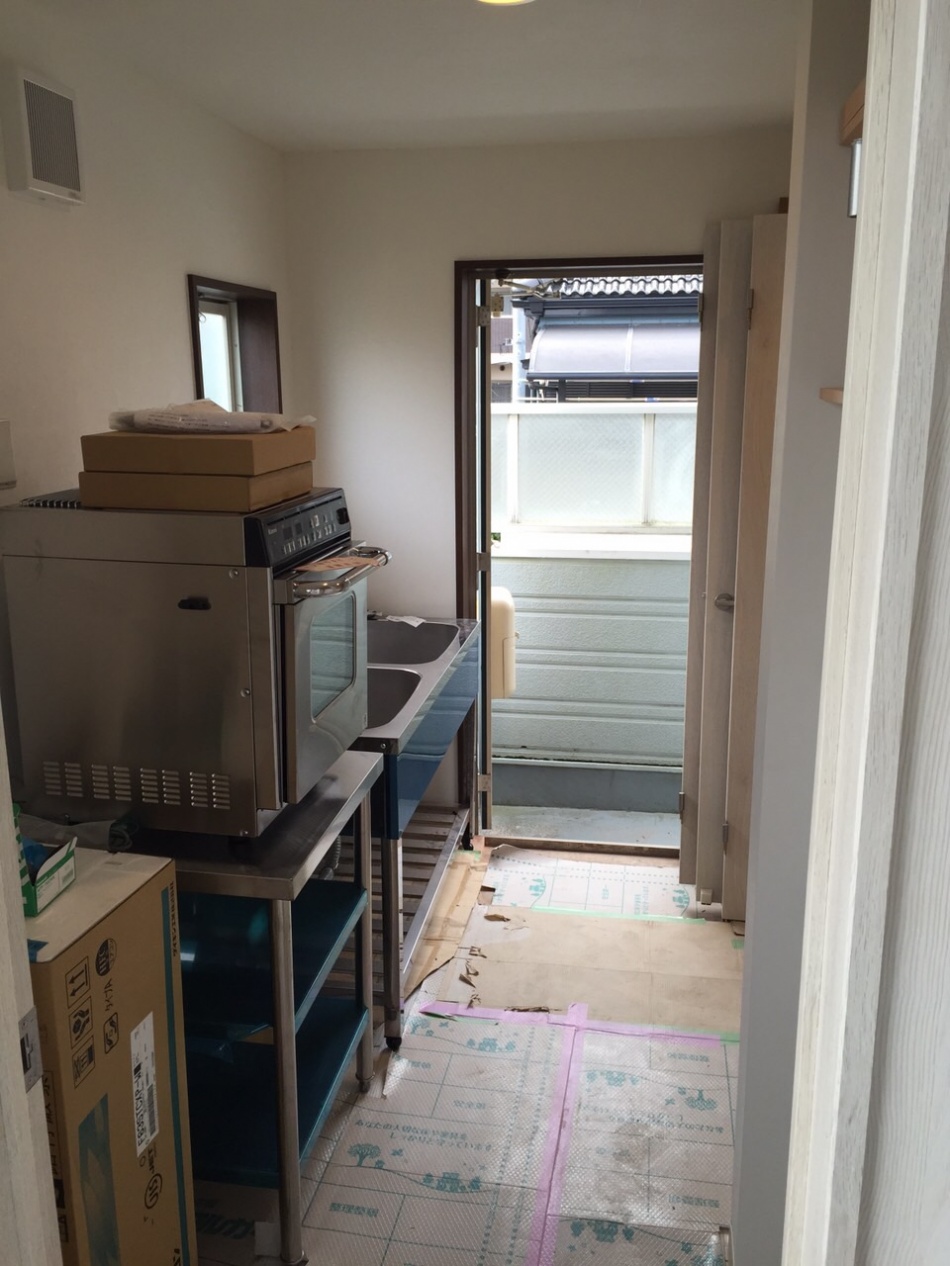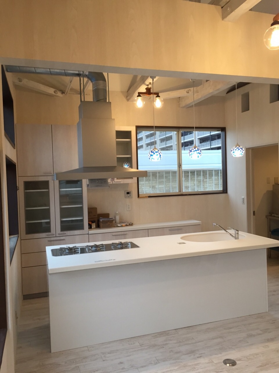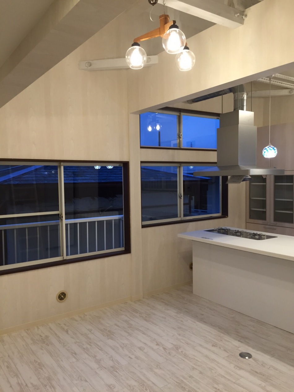 クロス,内装工事,キッチンダクト結び,照明器具取付の工事の後にクリーニングを行い完了です。完成が楽しみです。