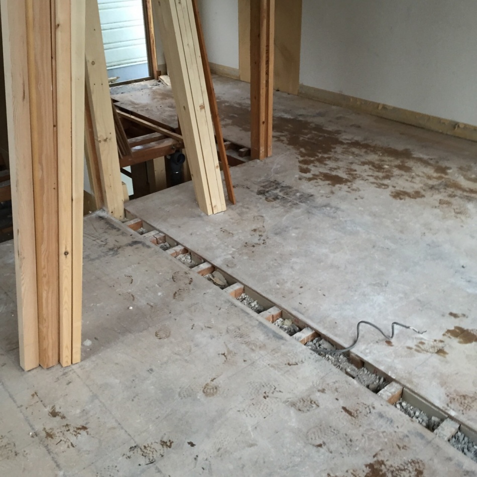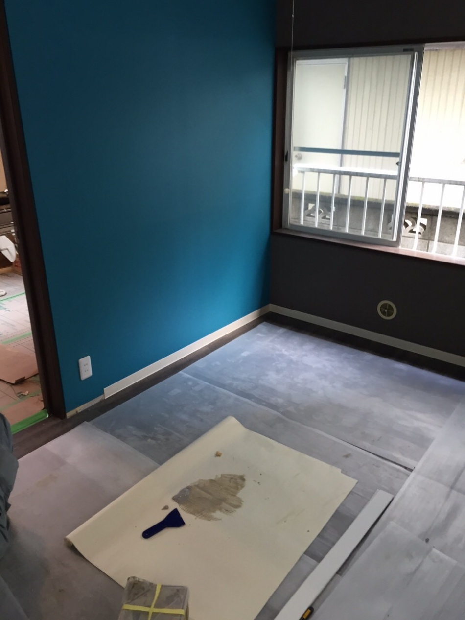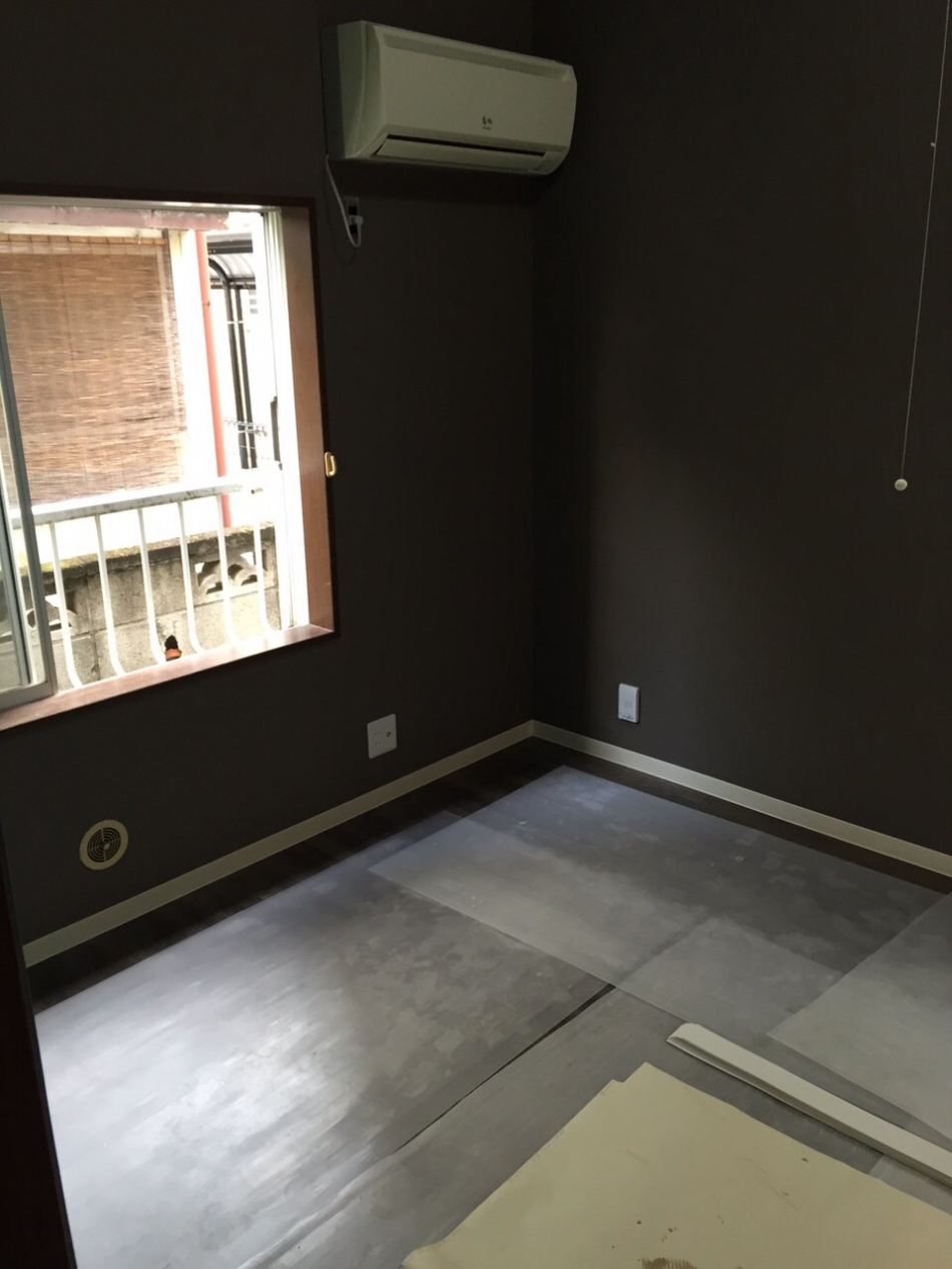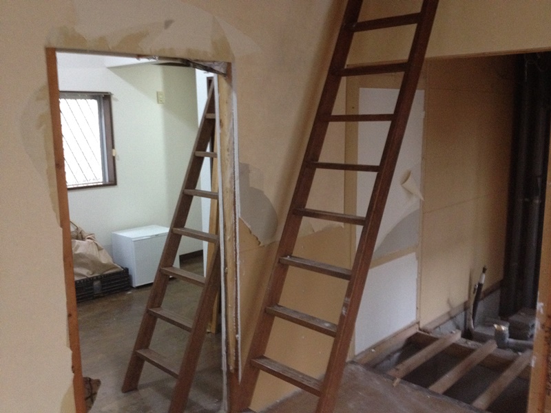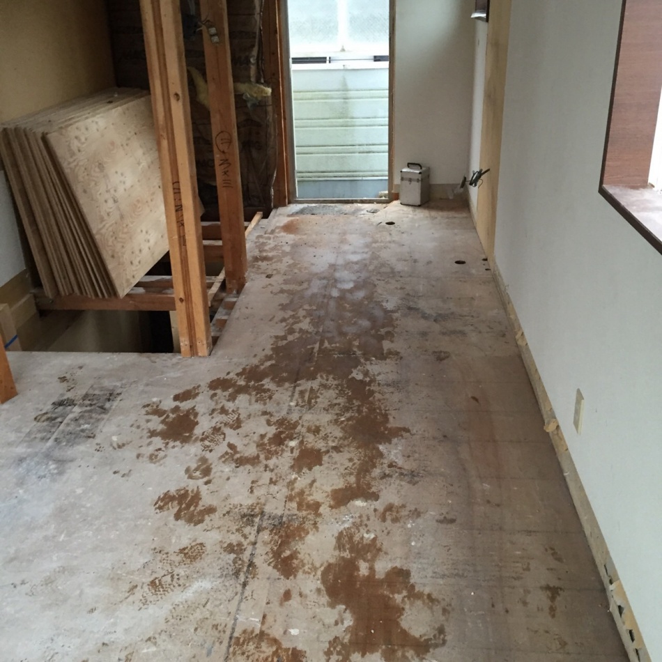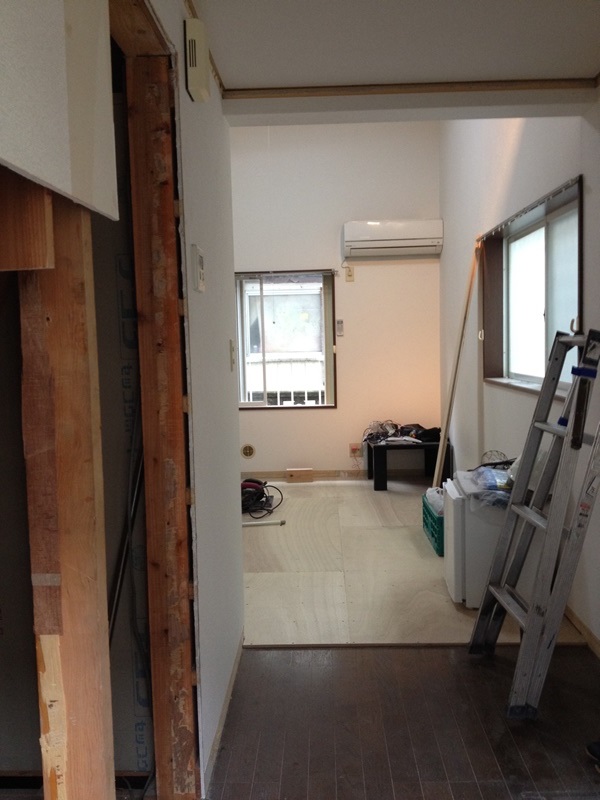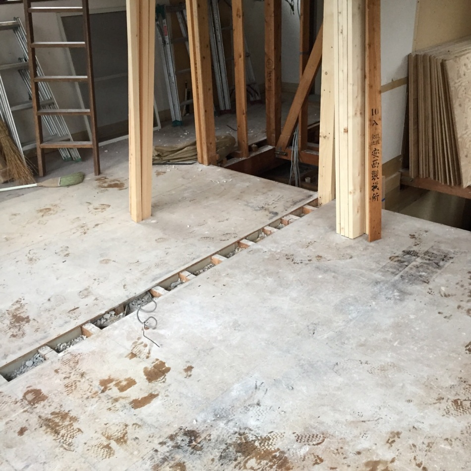 先日内部解体が終わりボード張り床下地張りをした状態です。少しずつ部屋らしくなってきました。