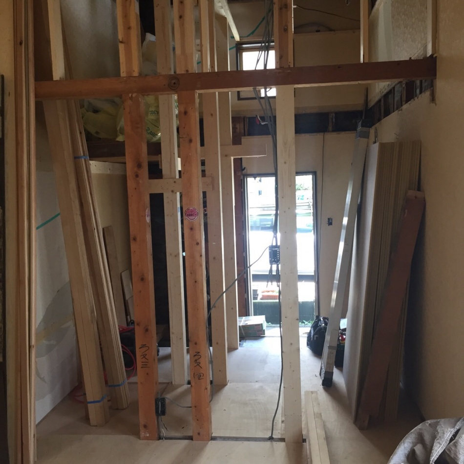 お施主様であるI様とと都度打ち合わせをして必要な補強をしながら改修にしていきます。