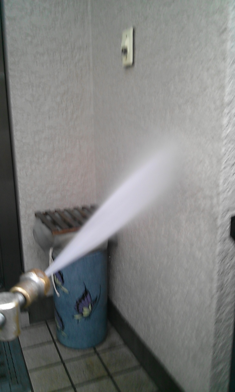 現在足場を組み立てて外壁屋根の高圧洗浄後の様子です。安全パトロールにて現場チェックに来ています。足場の安全性よし,道具の扱い方よしです。後は職人さんにしっかりと仕事をしていただきチェックすることが大事になります。