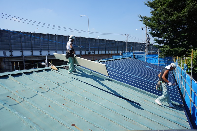 【埼玉県三郷市】K様倉庫改修工事-カバー工法による改修工事中です。
