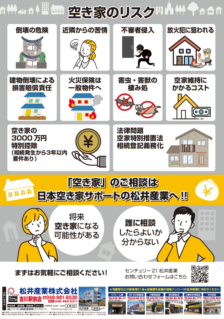皆さま、こんにちは!センチュリー21松井産業です。お手元の「不動産お困りごと解決案内」のチラシは、もうお読みいただけましたか?